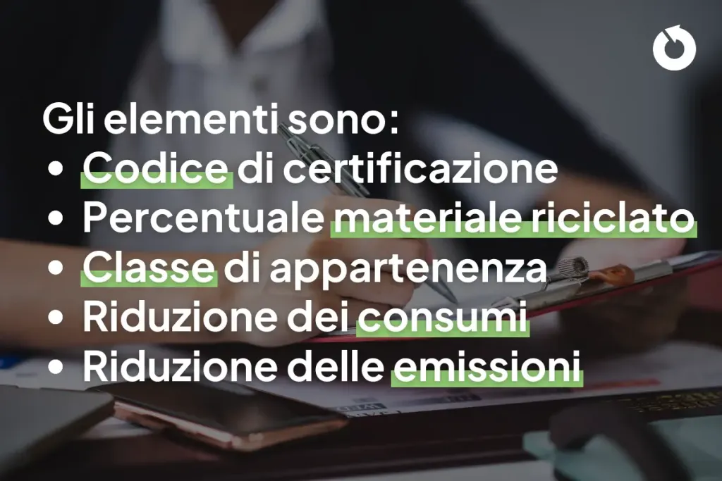 - Invio della domanda di certificazione, con indicazione degli elementi necessari come il numero di componenti in materiale riciclato presenti.