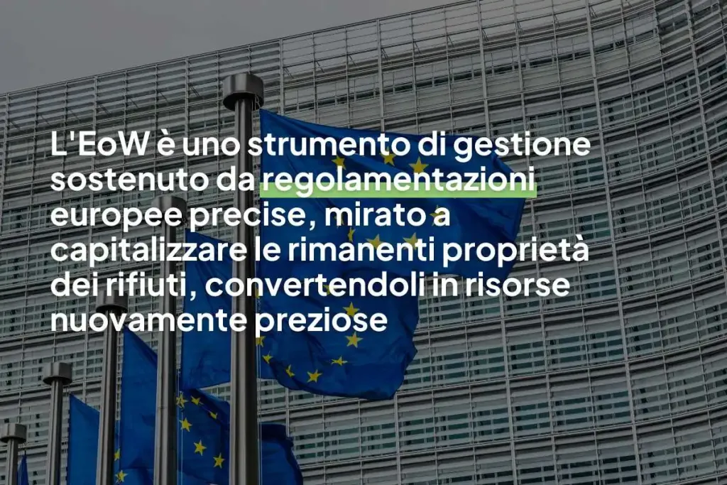 L’EoW è un mezzo di gestione supportato da normative comunitarie specifiche, il cui scopo principale è di valorizzare le potenzialità residue dei rifiuti, trasformandoli in risorse nuovamente utili.